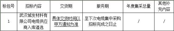 1.1項(xiàng)目名稱:武漢城發(fā)材料有限公司電纜供應(yīng)商入庫(kù)遴選